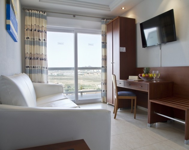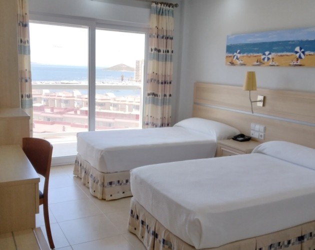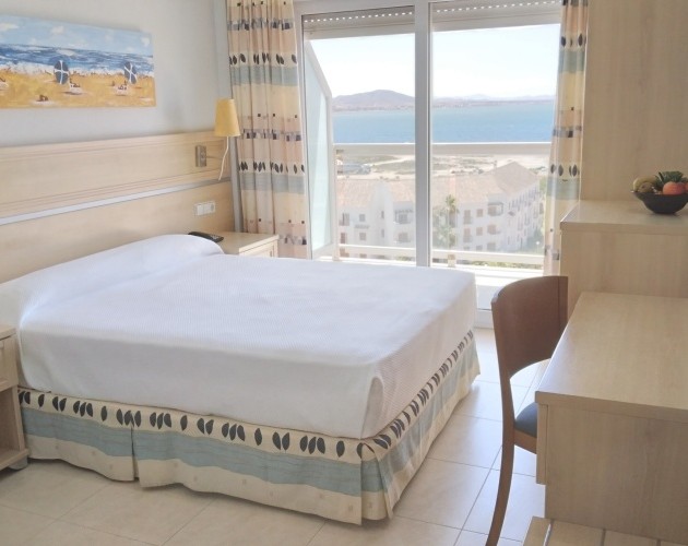 Um quarto confortável de 22 metros quadrados com um terraço privado com vista para a zona de La Manga - Cabo de Palos e para o hotel. O acesso ao terraço é feito através de uma porta de janela francesa.
